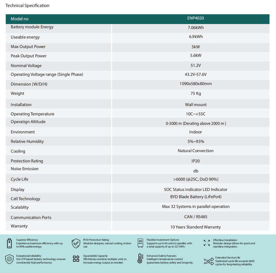 Slim series type-LV 7.06 kWh BYD Blade Battery